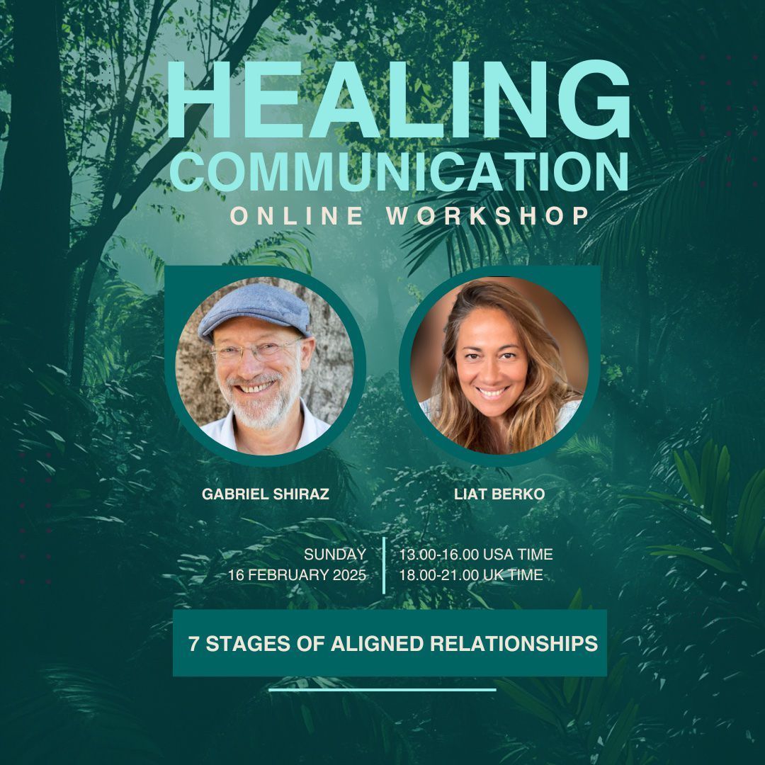 Welcome to our Online Workshop, Healing Communication ! This workshop aims to provide you with tools, insights, and practices to enhance emotional and somatic intimacy, authentic communication, personal and relationship development. The event will feature two relationship experts from the USA and Europe, offering methods to foster aligned relationships, through exploring various teachings, interactive exercises, meditations, and more. During the workshop we will explore 3 main topics: Identifying Various Relationship Dynamics. Exploring and understanding different dynamics and the effect on the body breathing patterns, state of mind, energy and soul. Recognize & Improve Awareness of Past and Current Wounds. Discussions and practices aimed at resolving past traumas, toxic patterns, and emotional baggage that affect current relationships. 7 Stages of Aligned Relationships Powerful tools for improving our ability for a healthy and sustainable relationship with exercises focusing on each of the 7 embodied energy centers. By attending this workshop, you will learn: Relationship Dynamics Awareness- Techniques to identify and shift unhelpful patterns in relationships Healing Practices for Emotional Wounds- Guided exercises to release past traumas, reduce emotional reactivity, and foster inner peace. The 7 Stages of Alignment Toolkit- Learn tools for sustainable partnerships through exercises focused on seven energy centers. The workshop is designed for Singles, Couples,Therapists, Coaches and anyone interested in personal growth within the context of relationships. Looking forward to see you on the 16 February 2025, Liat & Gabriel